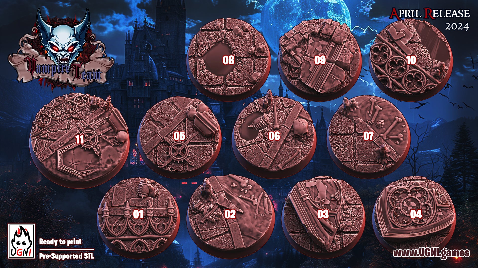 full team of Vampire Team players designed buy UGNI - https://www.patreon.com/UGNI_miniatures/posts